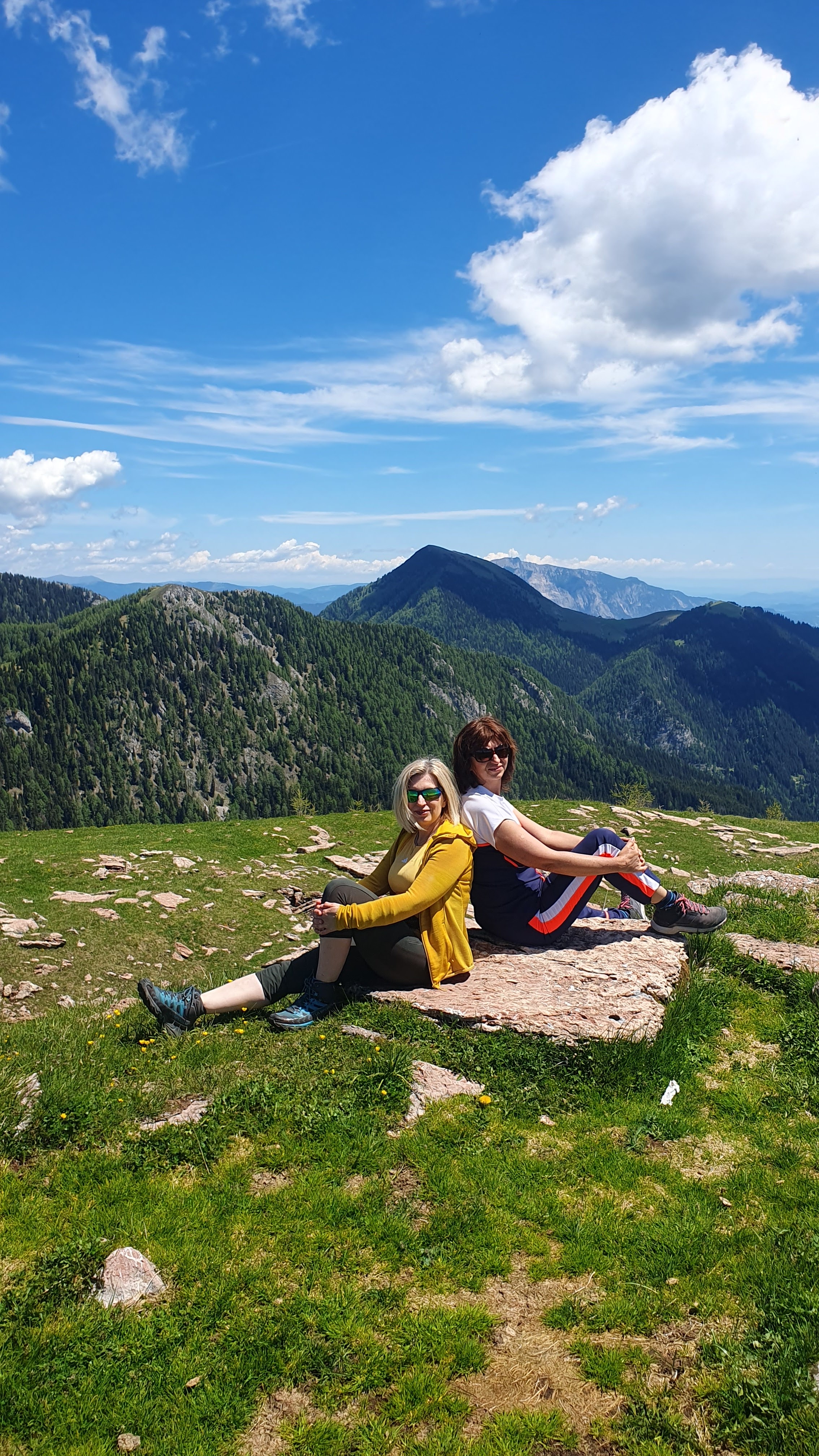 Neki leže, neki trčkaraju s jednog vidikovca na drugi, neki bi sve to odjednom, a ja ih obilazim s kutijom kolača – crnac bez jaja, jer ovo mi je prvi izlet s vodičkom iskaznicom. “Anči, je l’ bi ono bio Dobratsch?”, pokazuje Goran rukom vrh na kojem smo uživali u snijegu prije dva mjeseca. Slažemo se da jasno vidljiv toranj mora značiti samo to.