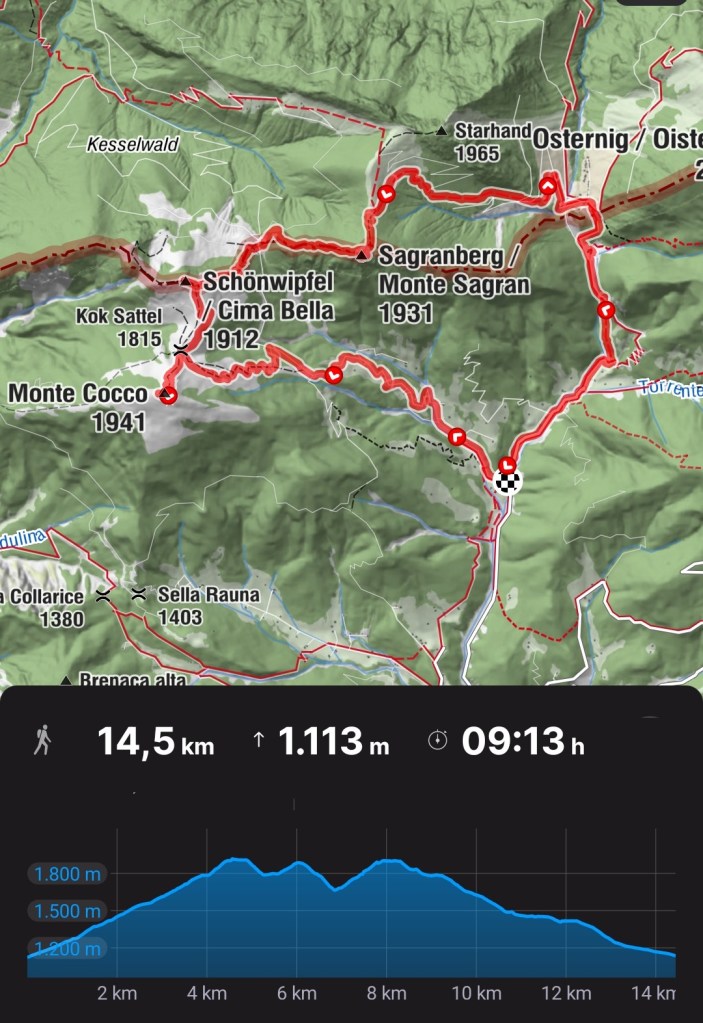 Ali vrijedilo je! Izlazimo na travnati proplanak Monte Cocca, kako se samo lijepo zove! Veselje se širi na sve strane kao i pogledi. “Evo, pogledaj, vidi se Grossglockner!”, govori Davor, a ono je Ancogel , tamo sam bio prošlu subotu.”