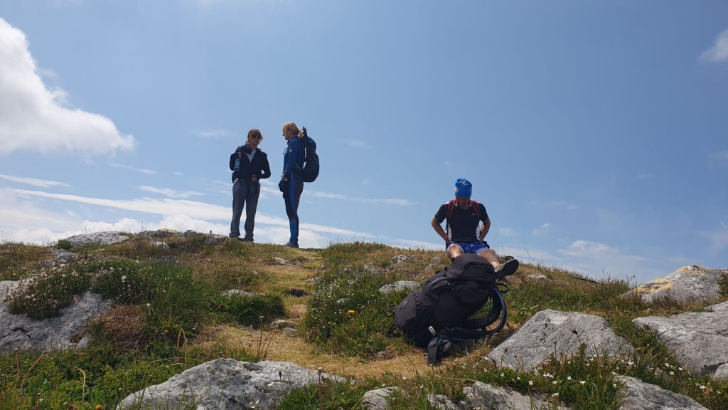 Odjednom put nestaje i pred nama se bijeli sipar, a tu je i rješenje u obliku desetak metara klinova i sajla na stijeni.