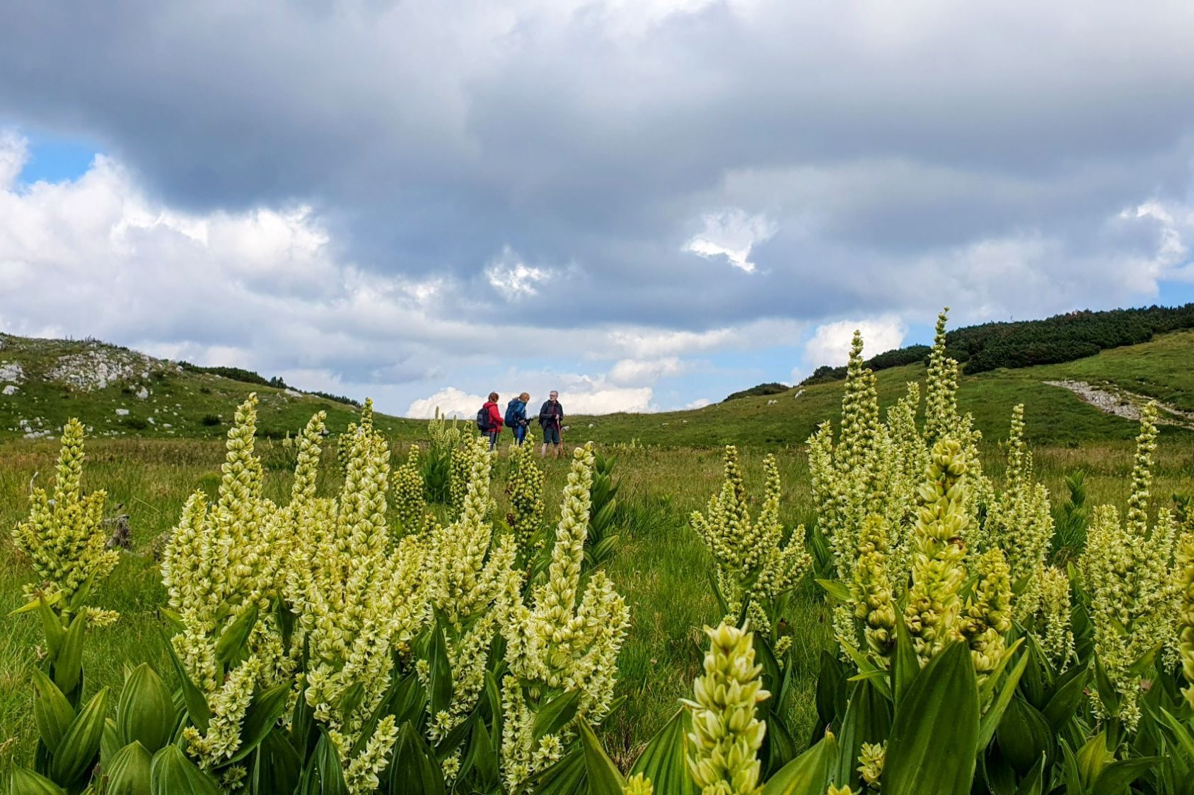 Ulazimo u šumu guste crnogorice s ruksacima na leđima i veselimo se novim vidicima, a do njih možemo doći samo usponom. Tlo je mekano od iglica, a svaka šumska jagodica razlog je za stati. Uskoro će to biti borovnice, jer sad su u cvatu. Temperatura oko 15 C i poneki oblak uvjeti su kakve si ljeti svaki planinar priželjkuje, a mi ih za sad imamo. Stalno se otvaraju novi vidici, samo da se i neki oblak ne otvori.