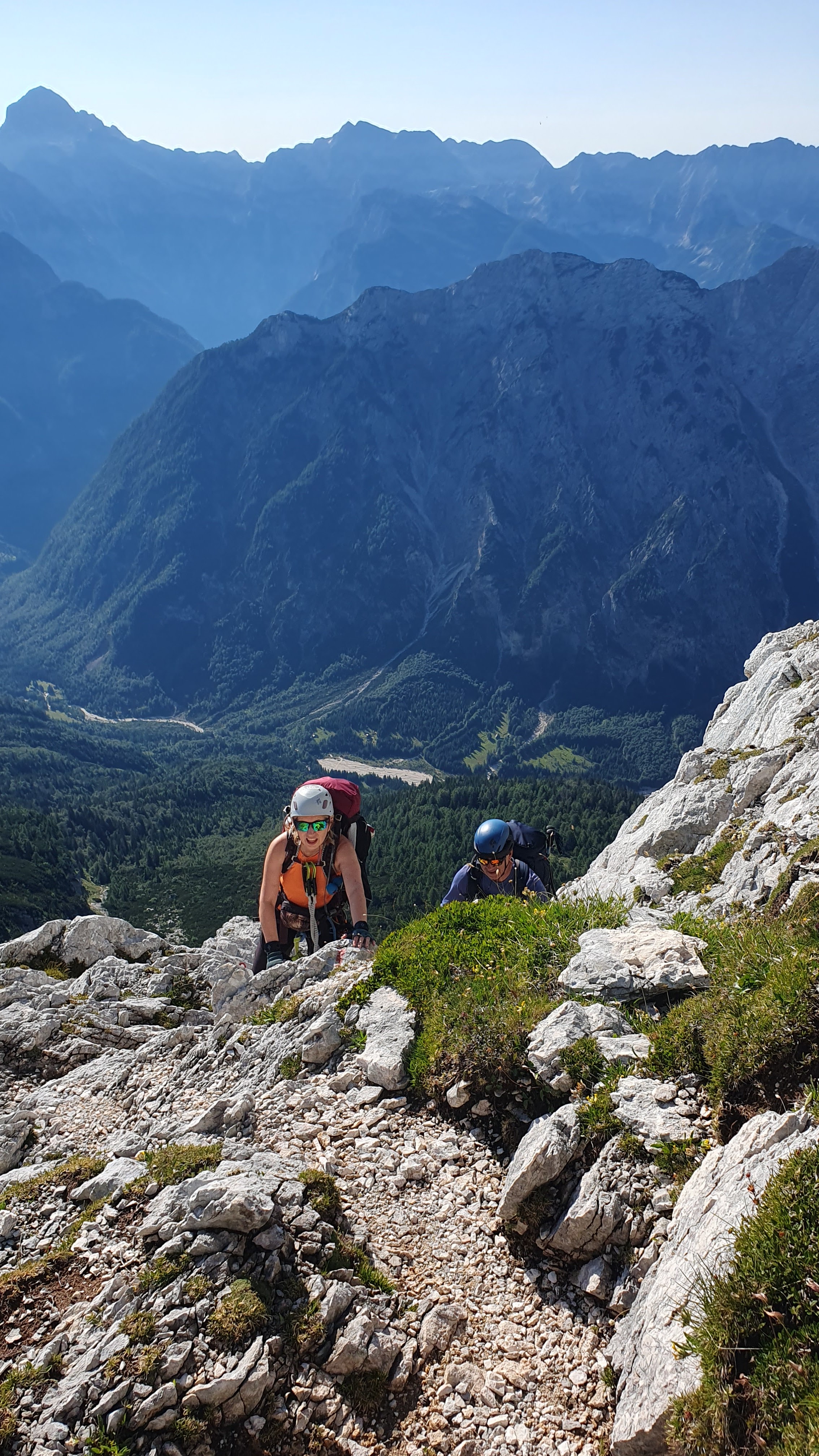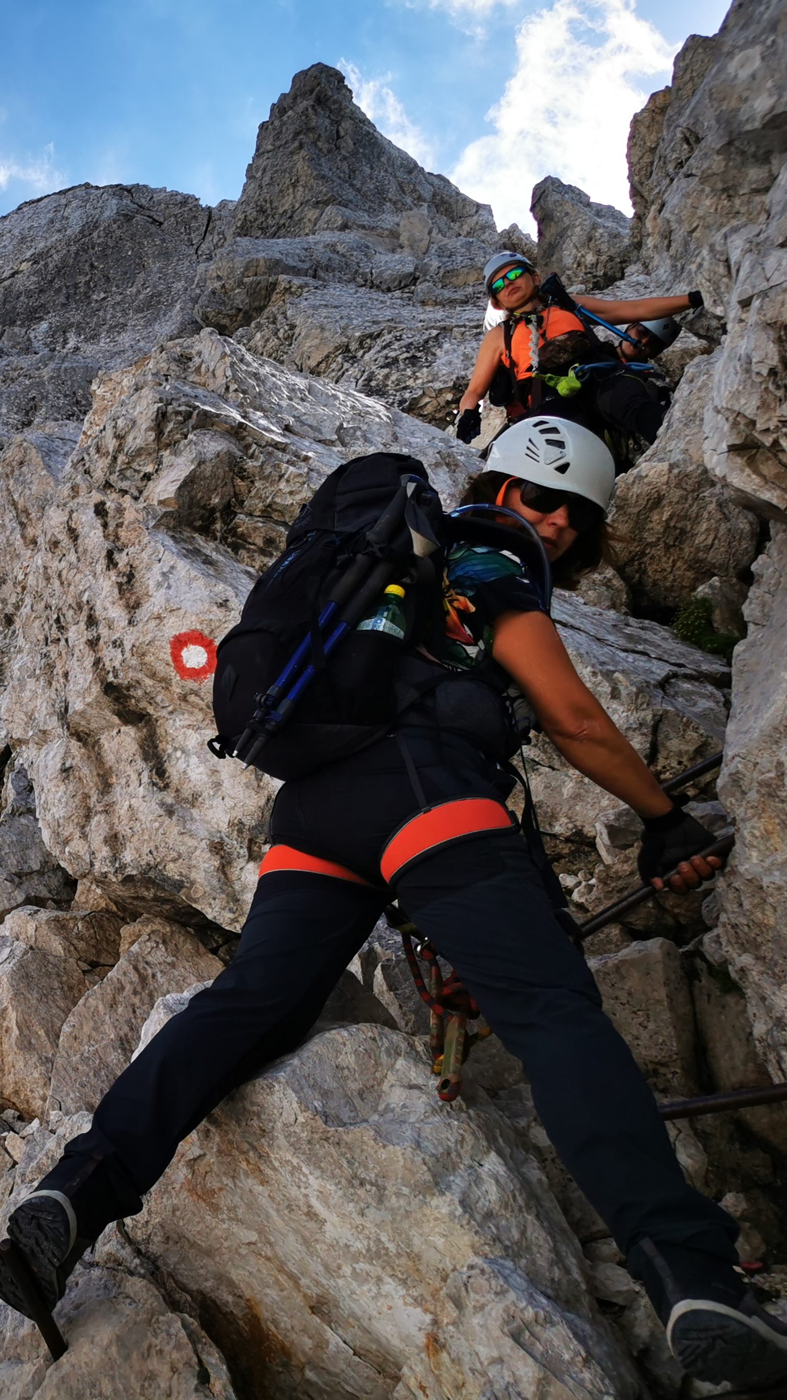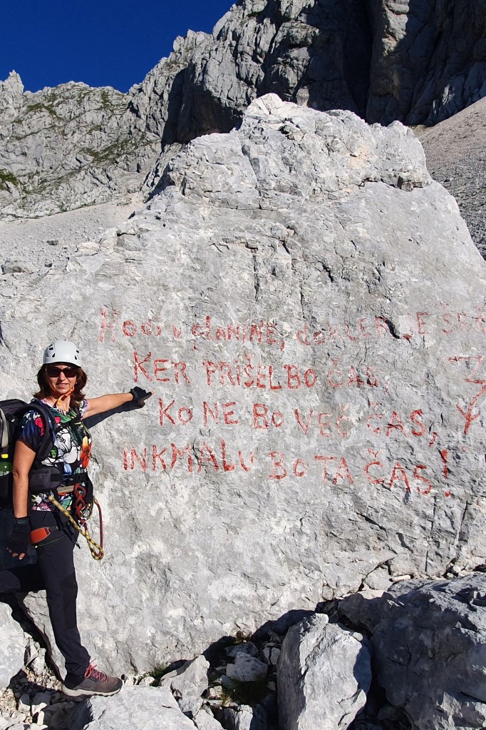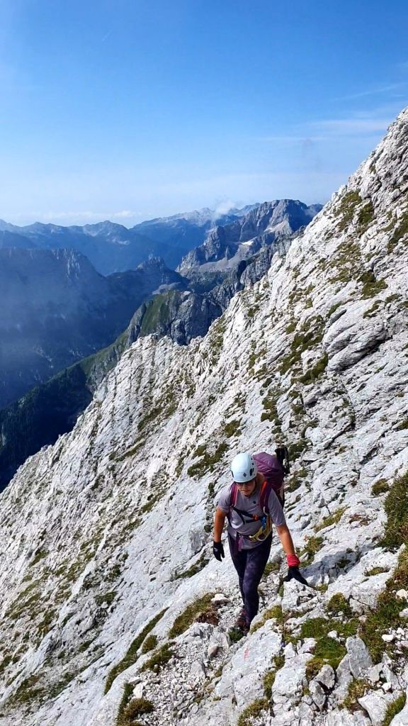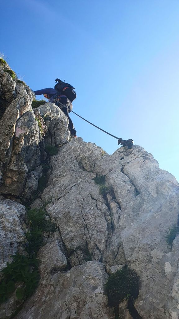 Želiš li putovati brzo, putuj sam. Želiš li stići daleko, putuj u društvu. Sa svakom riješenom dionicom, dok smirujem disanje dižem pogled, a ambijent se mijenja. Ne znaš je l’ gore gledati prema dolje u bezdan ili gore u strme stijene koje nas čekaju. “Hvala Bogu da se ovuda ne vraćamo!”, čulo se. Povremeno se dovikujemo s drugom grupom, nisu daleko.