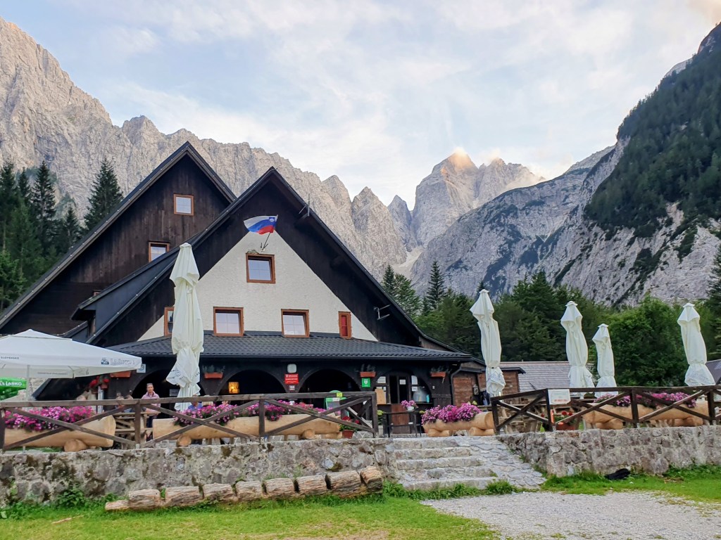 Autima putujemo do Planice, poznatog skijališta u dolini Tamar. Tu je Dražen dogovorio taxi kombi do Vršiča, gdje započinjemo dvodnevnu planinarsku turu. Prijevoj Vršič (1611 mnv) iznimna je razgledna lokacija između visokih vrhova Julijskih Alpa, a do njega iz Kranjske gore vodi asfaltirana cesta s točno 24 oštre serpentine.