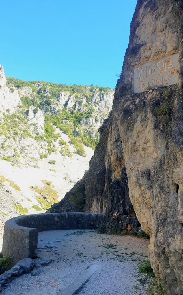 Planinarska kamena staza provlači se dijelom kroz hladovinu borove šumu, a dijelom otvorenim terenom. U sat vremena moje nožice savladale su 2 km i 300 m visinske razlike. Na nekoliko mjesta su označeni vidikovci i postavljene poučne table. Tako sad znam da je ljudska noga prvi put dotakla dno 2017. godine i da je to bio speleoronilac iz Francuske.