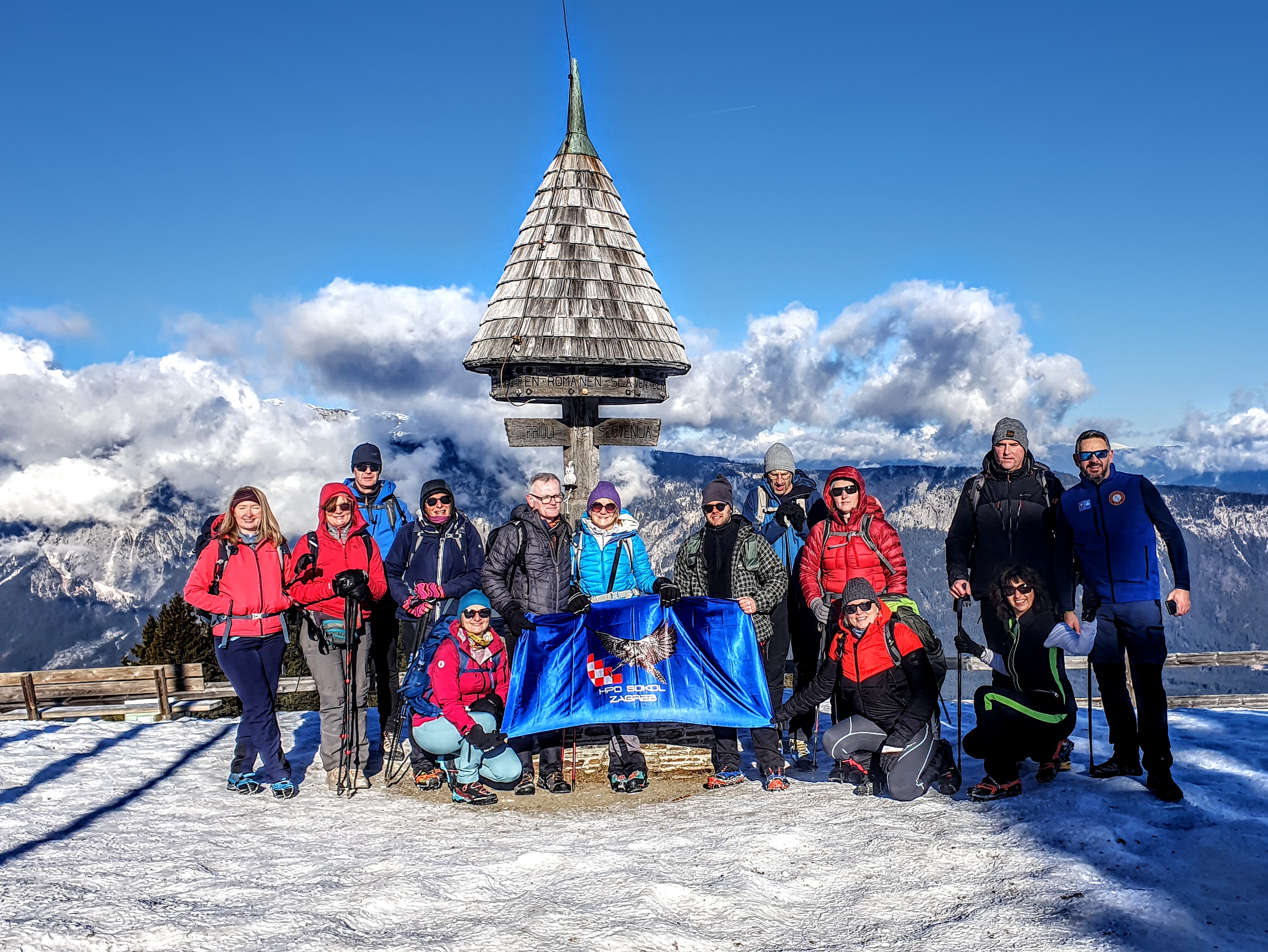 Ovo je obilježje vrha, u pozadini oblak uspješno sakriva austrijski vrh Dobratsch (2166 mnv) Ziljske Alpe – Austrija, koji smo obišli prošle zime,