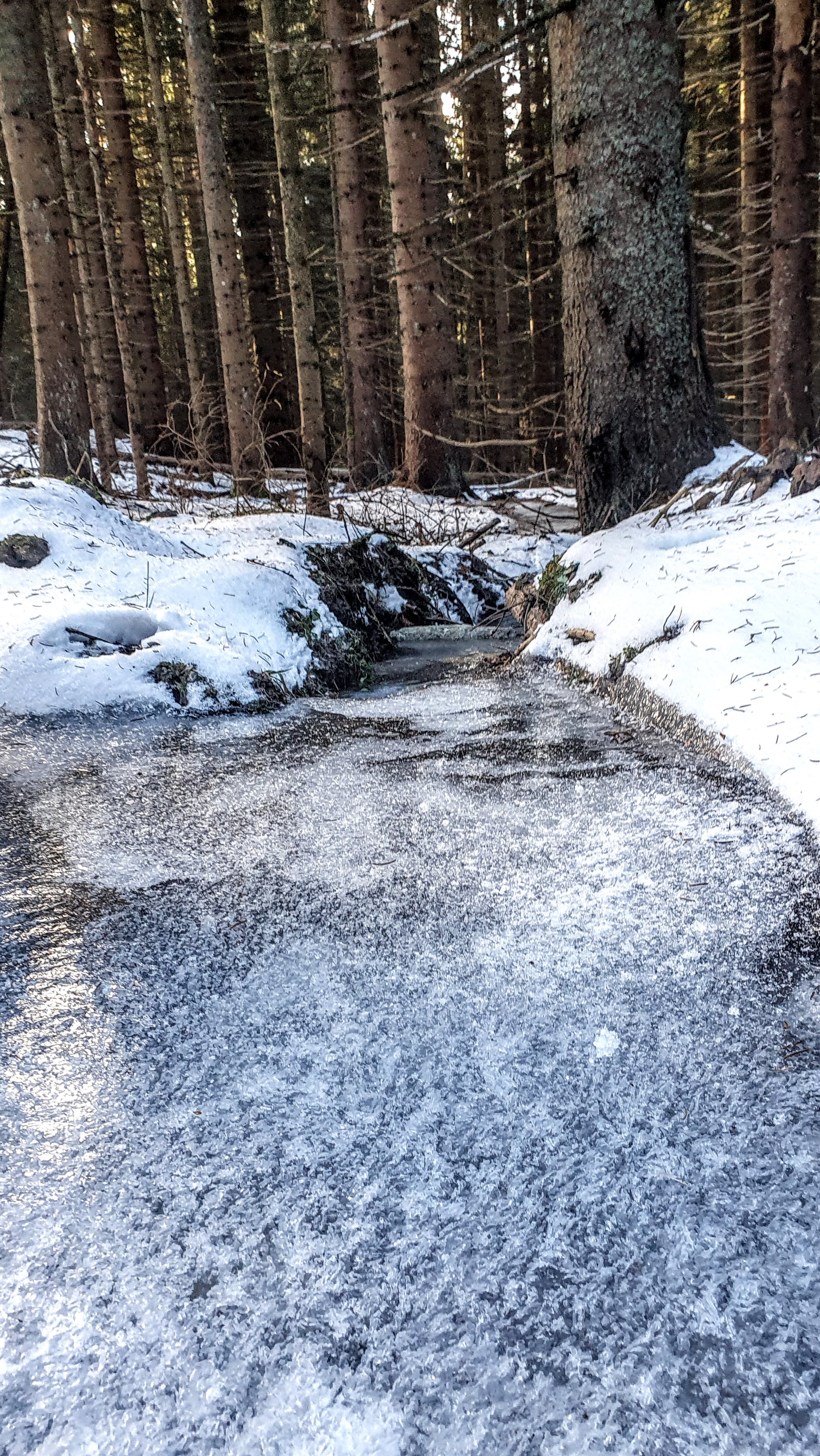 Nastavljamo stazom kojom je prije nas samo zeko prošao, pored zaleđenog potočića,