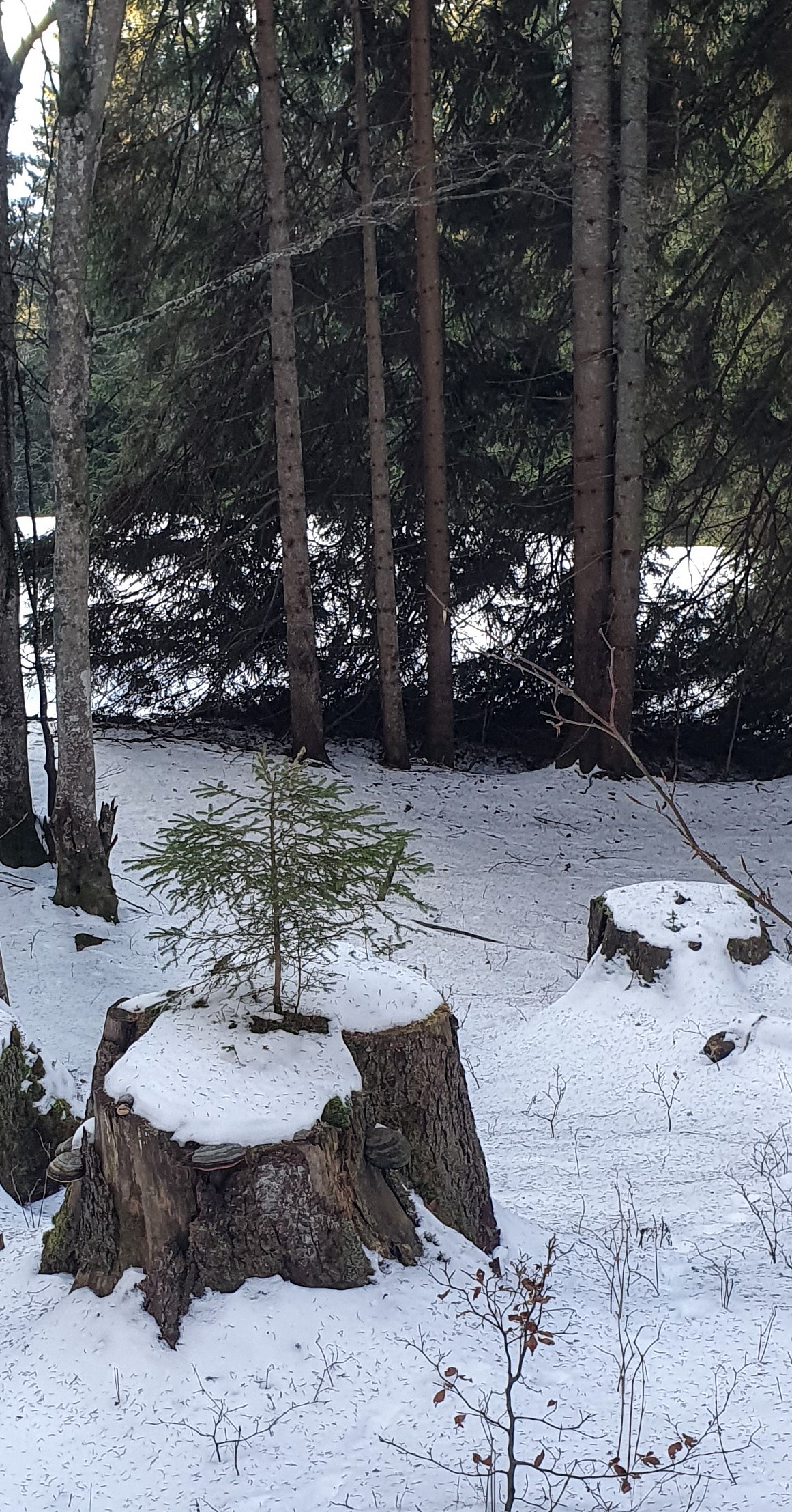 pored panja stare smreke iz kojeg raste nova i možda će za pedesetak godina doseći velićinu prethodnice. U godini može narasti do metar. Voljela bih ovuda proći za koju godinicu…