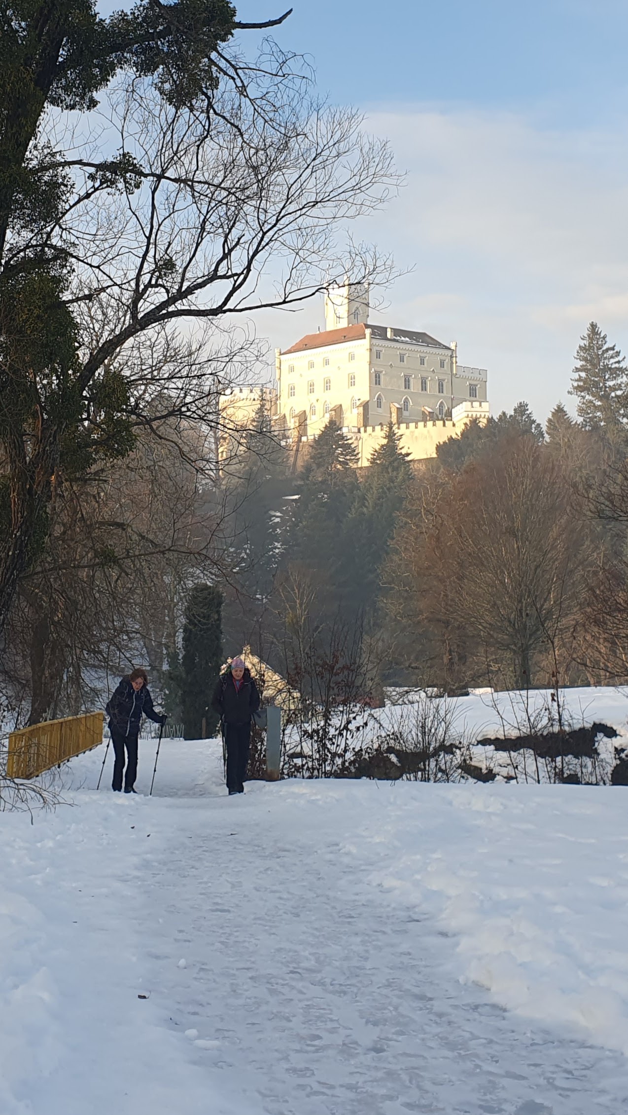 Trakošćan je naš najljepši, stoga i najposjećeniji dvorac, a za samo sat vremena autom od Zagreba izlazimo na zaleđeno parkiralište i oprezno klizimo prema istoimenom hotelu na kavu što ubuduće moram izbjegavati. Naime, ukusno dizajniran salon sa staklenom stijenom, mekoća fotelja, toplina i ugoda cjelokupnog ambijenta čini da zaboravljamo da smo došli zbog planinarenja. “Finska ili turska?”, spontano kreće razgovor.