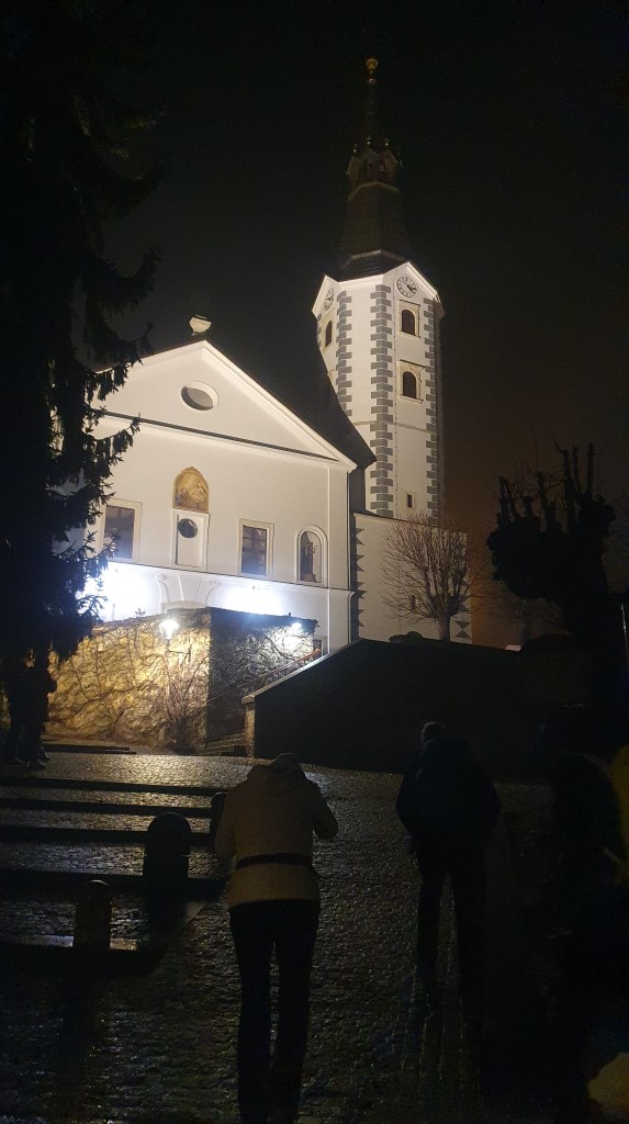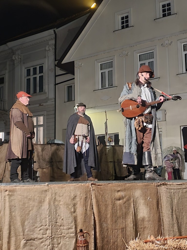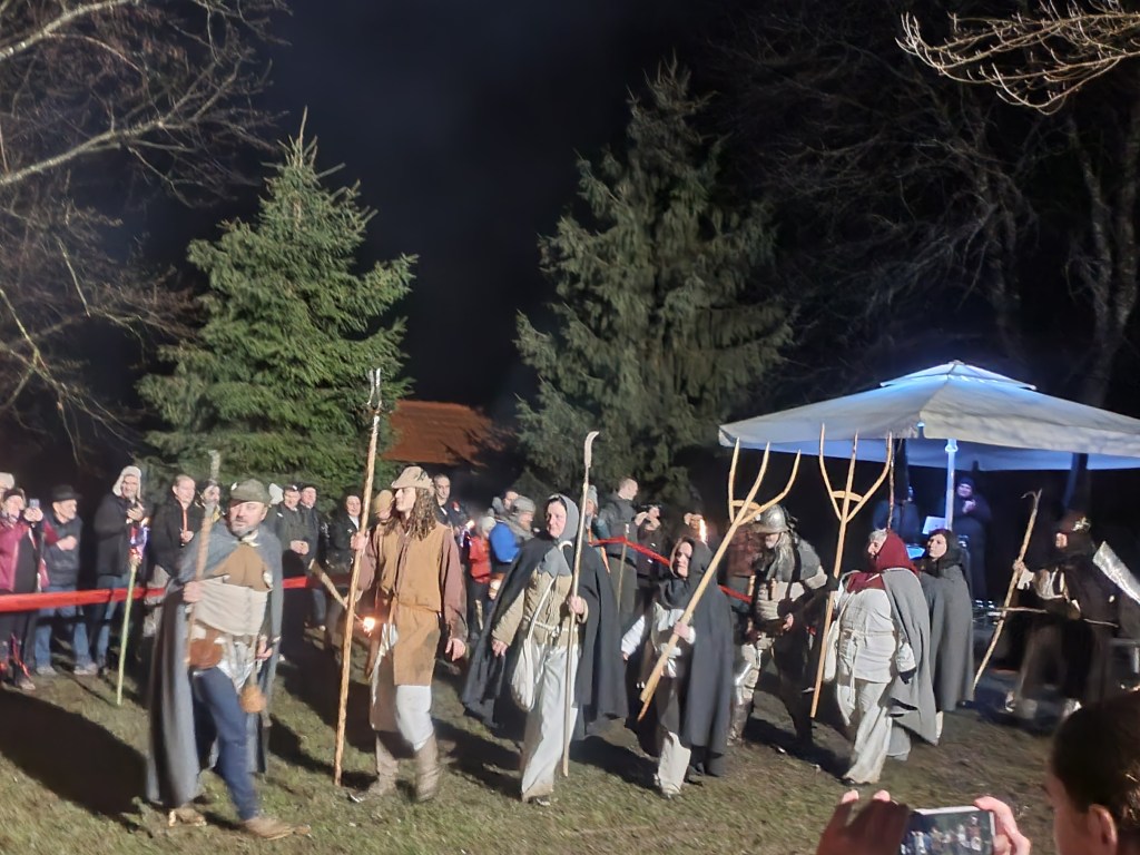 U Klanjcu su piće po želji u gostionici na toplom i tople domaće fritule obrisale sav umor u nogama i sad možemo dalje. Večer svakako nije hladna. Kišica još lagano rominja, a vjerujemo da će uskoro stati. Na Trgu Antuna Augustinčića okupilo se mnoštvo u kišnim kabanicama i pratimo prigodni program – vitezove i kmetove iz 1573. godine – puntanje kmetova, jer napadom kmetova na Cesargrad u noći s 27. na 28. siječnja, 1573. godine započela je Velika seljačka buna – pobuna kmetova protiv okrutnih feudalaca, prvenstveno protiv Franje Tahija.
