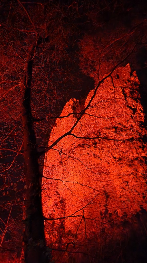 Idemo prema Cesargradu, koji gori u plamenu. Svjetlosna instalacija, koja obasjava ruševine dvorca i predstavlja kraj napada na utvrdu, koja je tog dana spaljena i opljačkana, pun je pogodak.