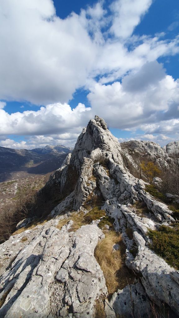 Uz vješto provedenu grebensku stazu kroz nepristupačno kameno carstvo velebitskih vila probijamo se prema vrhu Male Panoge, na ručak s pogledom. Nailazimo na putokaz “Ćelavac – 2 h” i pita netko je l’ idemo na Ćelavca, a naravno da ne idemo – imamo ih i ovdje. 🙂