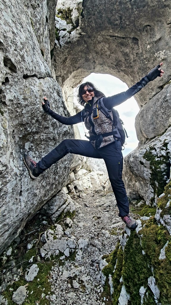 Nije teško, nije preopasno, onako baš taman koliko nam treba. Na stijeni stoji natpis “Vilinska vrata” – još jedan otvor u stijeni. Našoj mašti poticaj za fotografiju i mnogo razloga za smijeh, jer nismo svi jednako spretni. 🙂