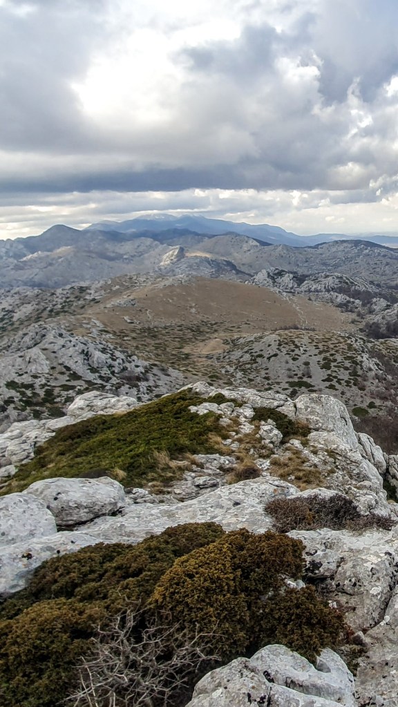 Neki biraju zavjetrinu i pogled na ličku stranu, gdje najviše pažnje dobiva Zir, neki svu energiju usmjeravaju na oblak iznad Svetog brda, želeći da otplovi dalje i otvori jasnu sliku na pravilni stožac tog karizmatičnog vrha, a neki gledamo čeznutljivo prema moru, jer 1064 metra ispod nas je Karinski zaljev, šum valova i miris bora.