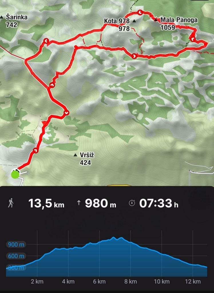 S Velike Panoge nastavljamo u istom smjeru i u istom ritmu gore – dolje, tj. prvo dolje onda gore na Malu Panogu.