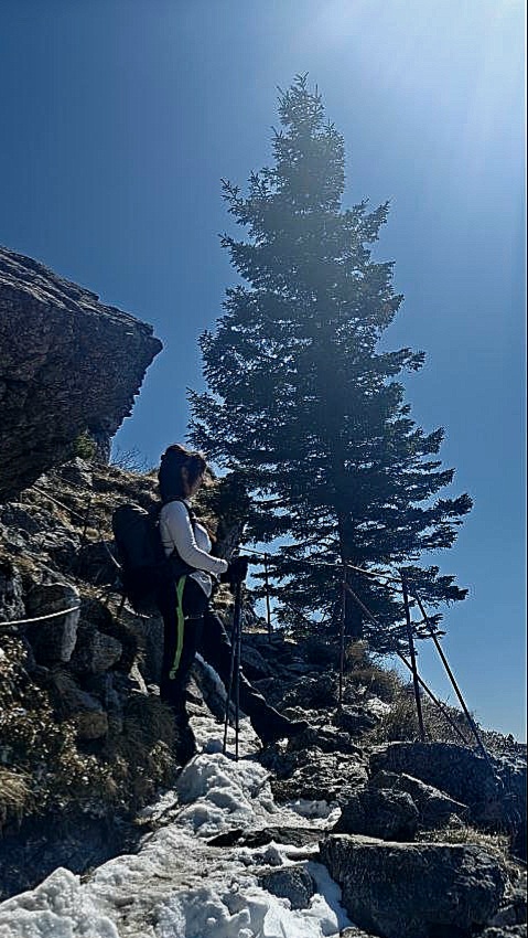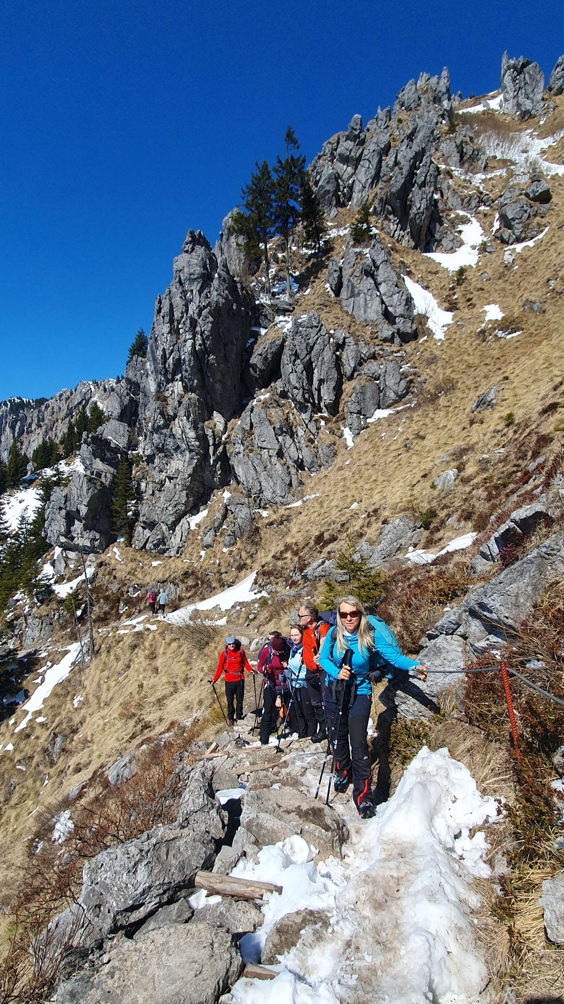 Nazubljene stijene, otvoreni vidici, drvene stepenice, sajle kao podrška, ma divota! Naravno, iza svake te okuke pitam se što je sljedeće. Hoće li neki izloženi dio biti zaliven s previše snijega, hoće li se nečija gojzerica nespremna naći na skrivenoj ledenoj plohi, jesmo li jednostavno trebali ostati doma? Da, srce zadrhti svako malo. Čas od ushita, čas od brige. To je planinarenje.