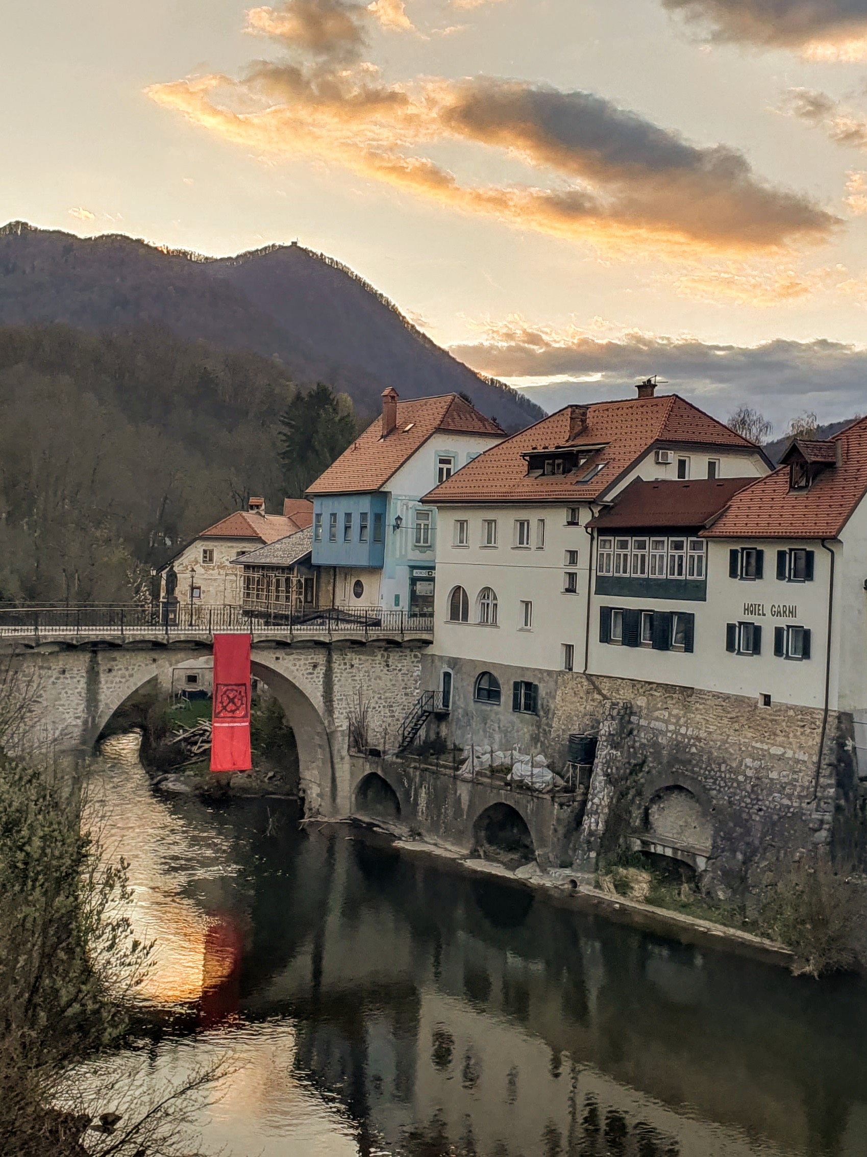 A što je to? Bljesak metala. Viseći mostić! Wow! Kakva neočekivano dobra ponuda za ljubitelje penjanja. Penjalište je sagradilo Planinarsko Društvo Železniki, a mi smo prionuli sa svih strana.