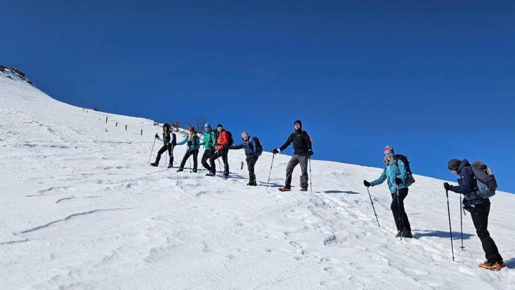 Zaobilazimo dom da nam misli o kavi i kobasicama ne kvare planove te na klupi ispred zimskog bivka (skloništa) stavljamo dereze za siguran uspon do našeg cilja najvišeg vrha Ratitovca, koji se zove Altemaver, a visok je 1678 m.